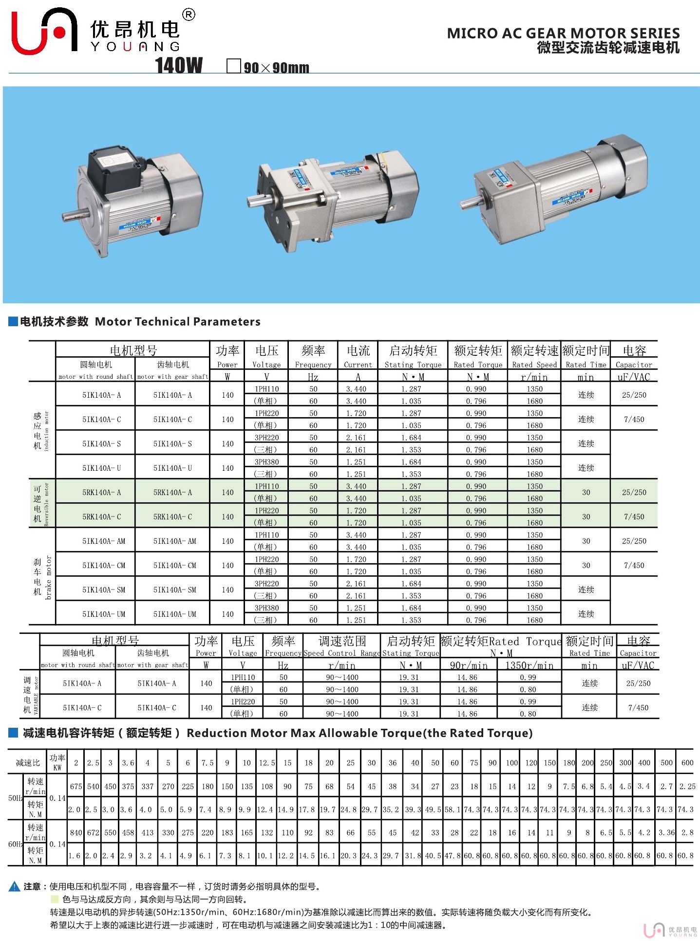 - 產品簡介:型號:6IK140GU-CF/6GU3~500K6IK140GU-CMF 6IK140RGU-CF 6IK140RGU-CMF 6IK140GU-YF 6IK140GU-YMF 6IK140GU-SF 6IK140GU-UF功率:140W電壓:220V(110V/380V)轉速:3~1400轉減速比:3~500常用選型:開門機、制藥機、包裝機、印刷機、執(zhí)行器