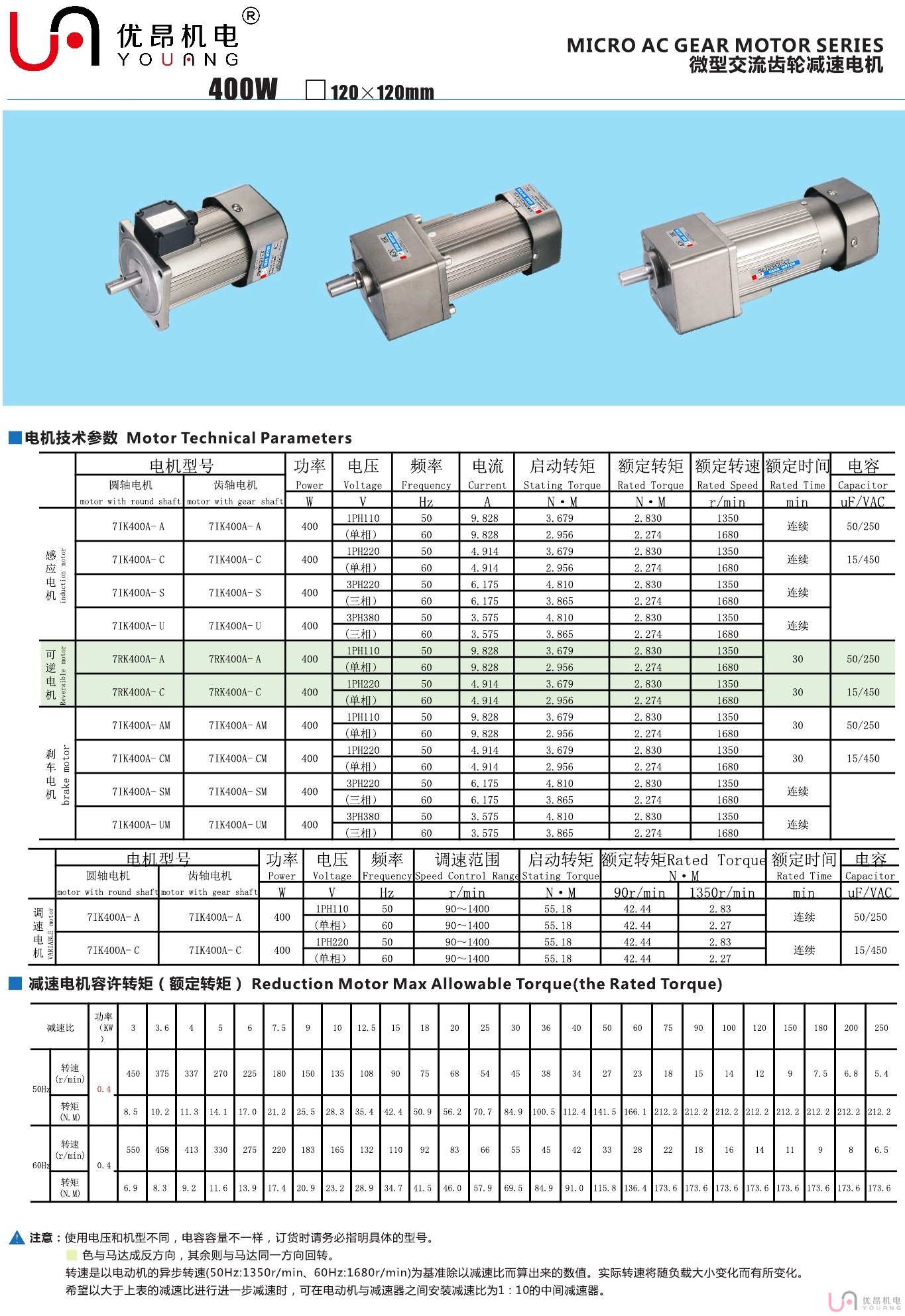 - 產(chǎn)品簡介:型號(hào):7IK400GU-CF/7GU3~500K7IK400GU-YF,7IK400GU-SF,7IK400GU-UF,7IK400RGU-CF,7IK400GU-CMF,7IK400RGU-CMF,7IK400GU-SMF,7IK400GU-YMF功率:400W電壓:220V(110V/380V)轉(zhuǎn)速:3~1400轉(zhuǎn)減速比:3~500常用選型:農(nóng)用機(jī)、制冰機(jī)、包裝機(jī)、印刷機(jī)、打包機(jī)