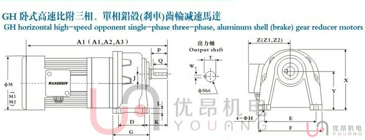 | 馬力 | 減速比 | 本體 | 型號(hào) | A1 | A2 | A3 | D | E | F | G | H | L | J | K | M1 | M2 | X | Y | Z1 | Z2 | 重量KG |