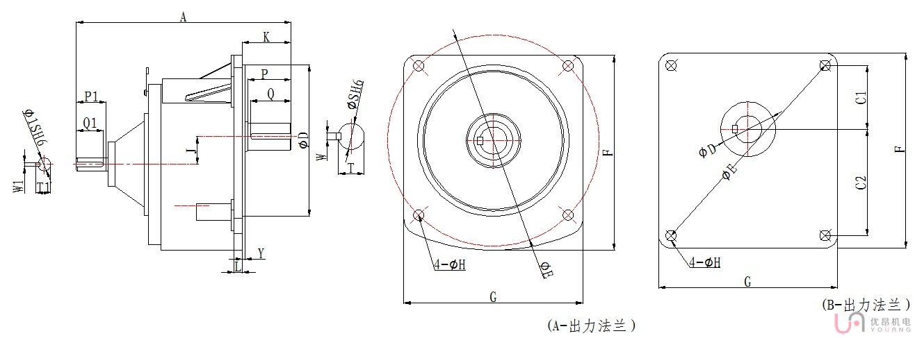 | 馬力HP-4P | 減速比 | 型號 | A | D | E | F | G | H | J | K | L | Y | 重量KG |